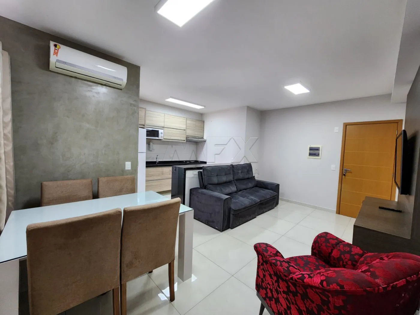 mobiliado(tv,sofá,lava louças, cooktop, forno, mesa c/4 cadeiras, geladeira e micro-ondas)
