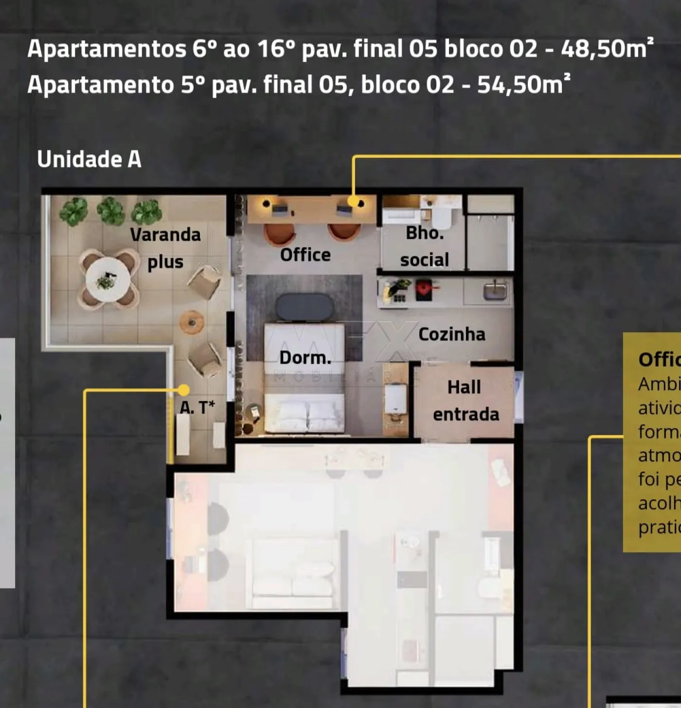 Memorial de incorporação a ser registrado na matrícula 136.882 do 1º Cartório de Registro de Imóveis da Comarca de Bauru/SP. Todas as imagens são meramente ilustrativas. Móveis e utensílios são sugestão de decoração e não são parte integrante da unidade autônoma. Cores, texturas, materiais de acabamentos e decorativos, mobiliário das áreas comuns, paisagismo e detalhes construtivos serão entregues conforme memorial descritivo, mas podem variar por exigências legais da aprovação ou quando da execução.