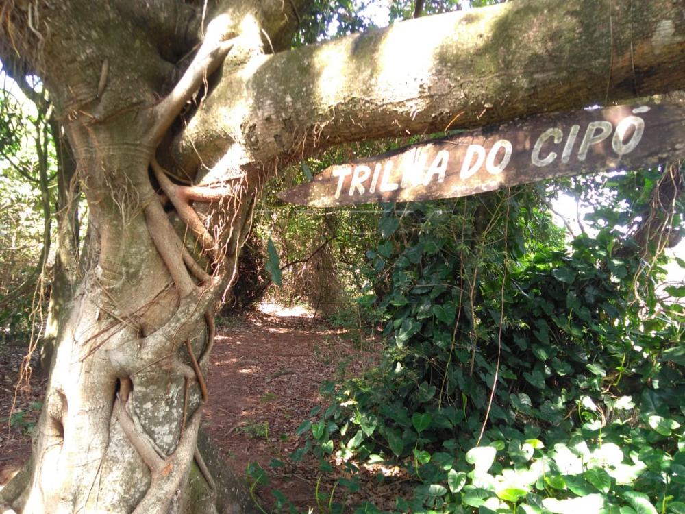 Trilha em mata nativa de 15 minutos de caminhada com jatobás, copaibas etc.;