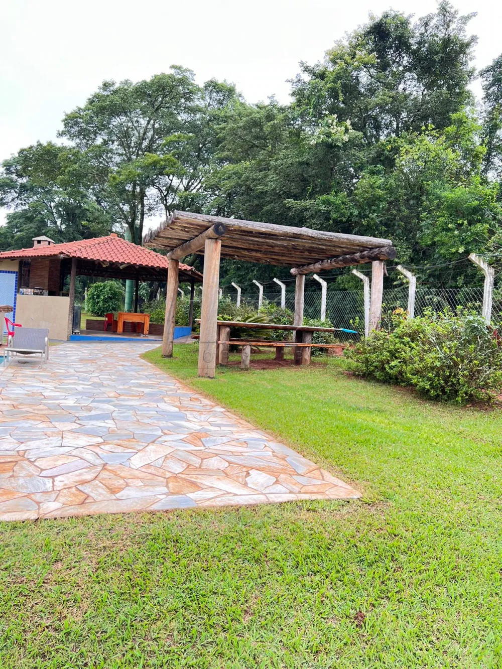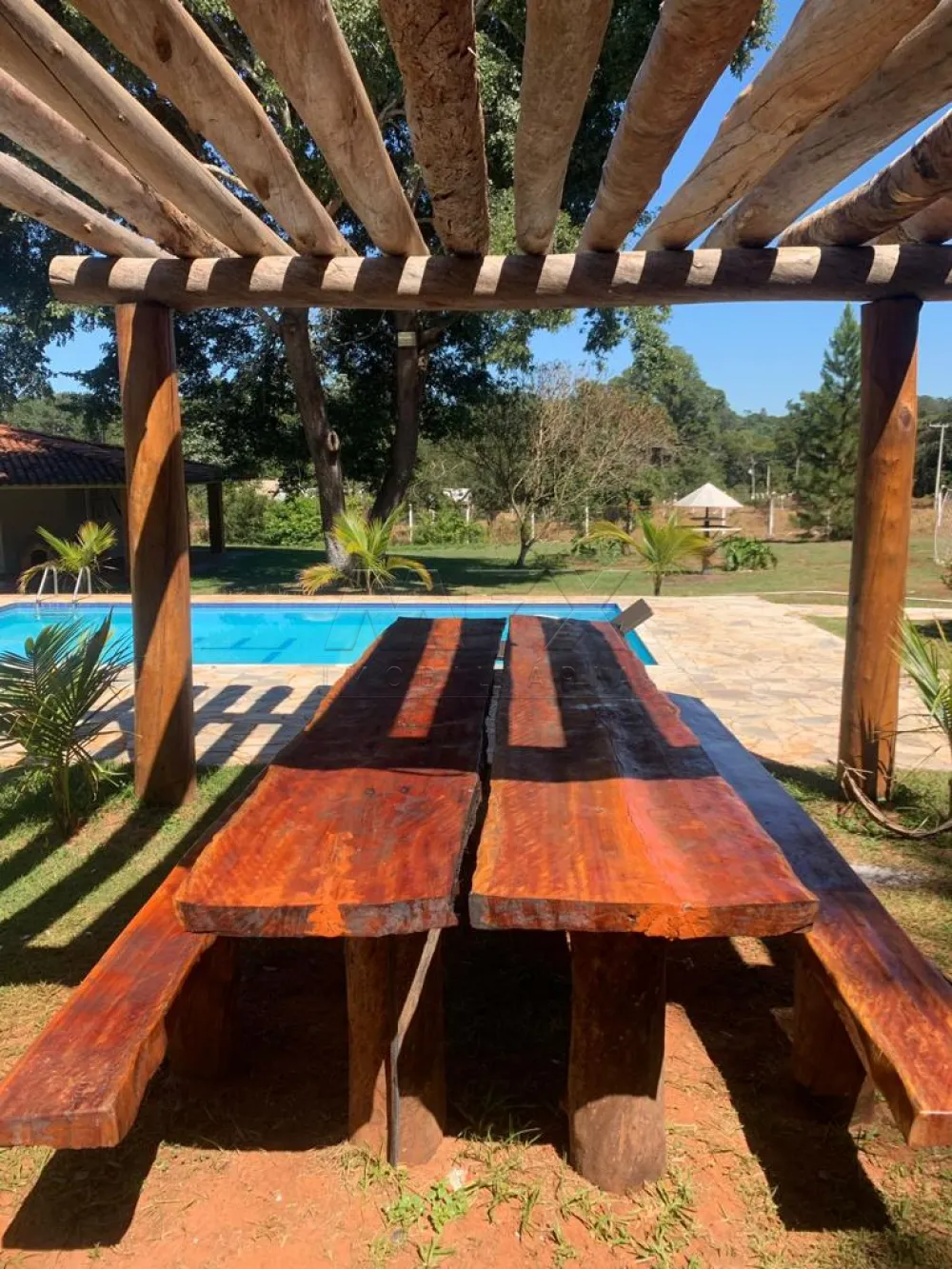 Piscina grande, jacuze com água fria e quente, 1 Pergolado bem grande com mesa de madeira e bancos rústicos